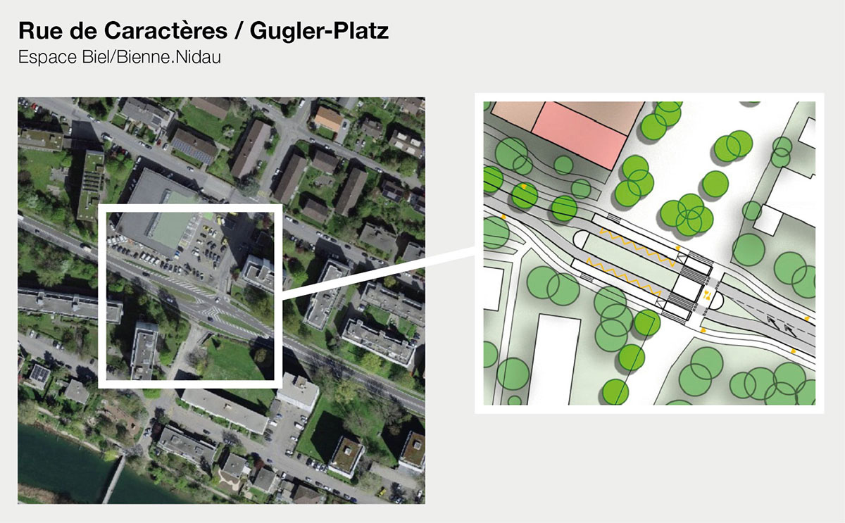 Einer der Arbeitsschwerpunkte von EBBN war der Studienwettbewerb zu «Rue de Caractères». Die Aufwertung der Achse «Bernstrasse–Aarbergstrasse–Ländtestrasse» ist ein zentrales Anliegen aus dem Dialogprozess Westast Biel/Bienne. Im Rahmen von EBBN haben die Städte Biel und Nidau sowie der Kanton Bern einen Studienwettbewerb für ein gesamtheitliches Verkehrs- und Gestaltungskonzept auf dieser Verkehrsachse durchgeführt.