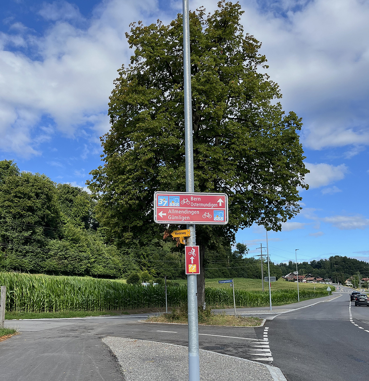 Eine besondere Schonung erfuhr die alte Linde bei der Einmündung Gümligental, um die herum der Veloweg in einem eleganten Bogen führt.